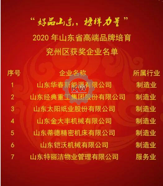 5月8日,山東省市場(chǎng)監(jiān)管局隆重舉辦“好品山東,榜樣力量”2020年“中國(guó)品牌日”(山東)活動(dòng),現(xiàn)場(chǎng)發(fā)布了2020年度山東省高端品牌培育企業(yè)名單,我區(qū)7家企業(yè)光榮上榜,占濟(jì)寧市全部18家上榜企業(yè)的39%,在濟(jì)寧市各縣市區(qū)中名列榜首。具體獲獎(jiǎng)名單如下: